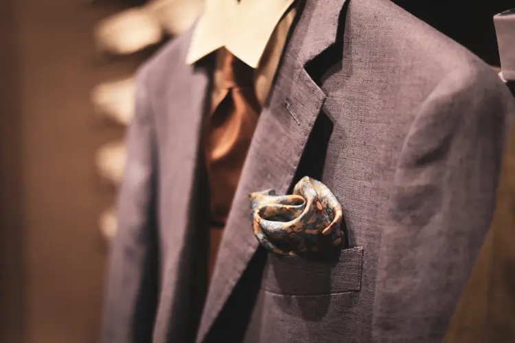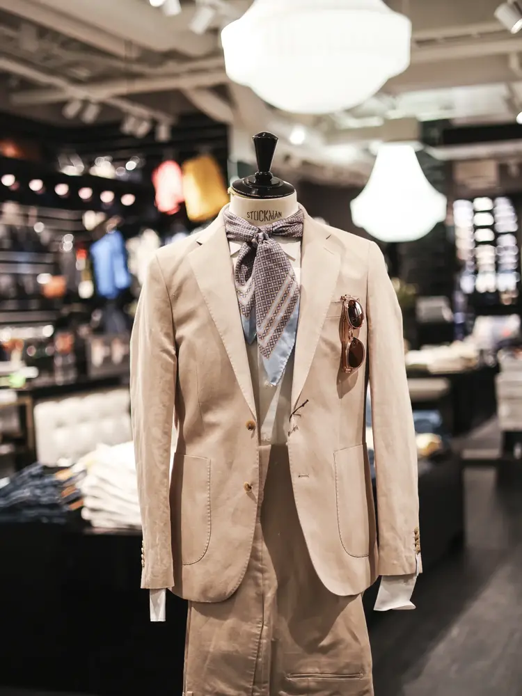 Prøv å utfordre deg litt på tilbehørsfronten. I stedet for sløyfe eller slips til dressen er et silketørkle i halsen en kjempefin vri. Du kan enten gå for en vanlig knute, eller legge skjerfet inni jakkeslaget for en mer laidback stil. Legg gjerne til et par kule solbriller i brystlommen.